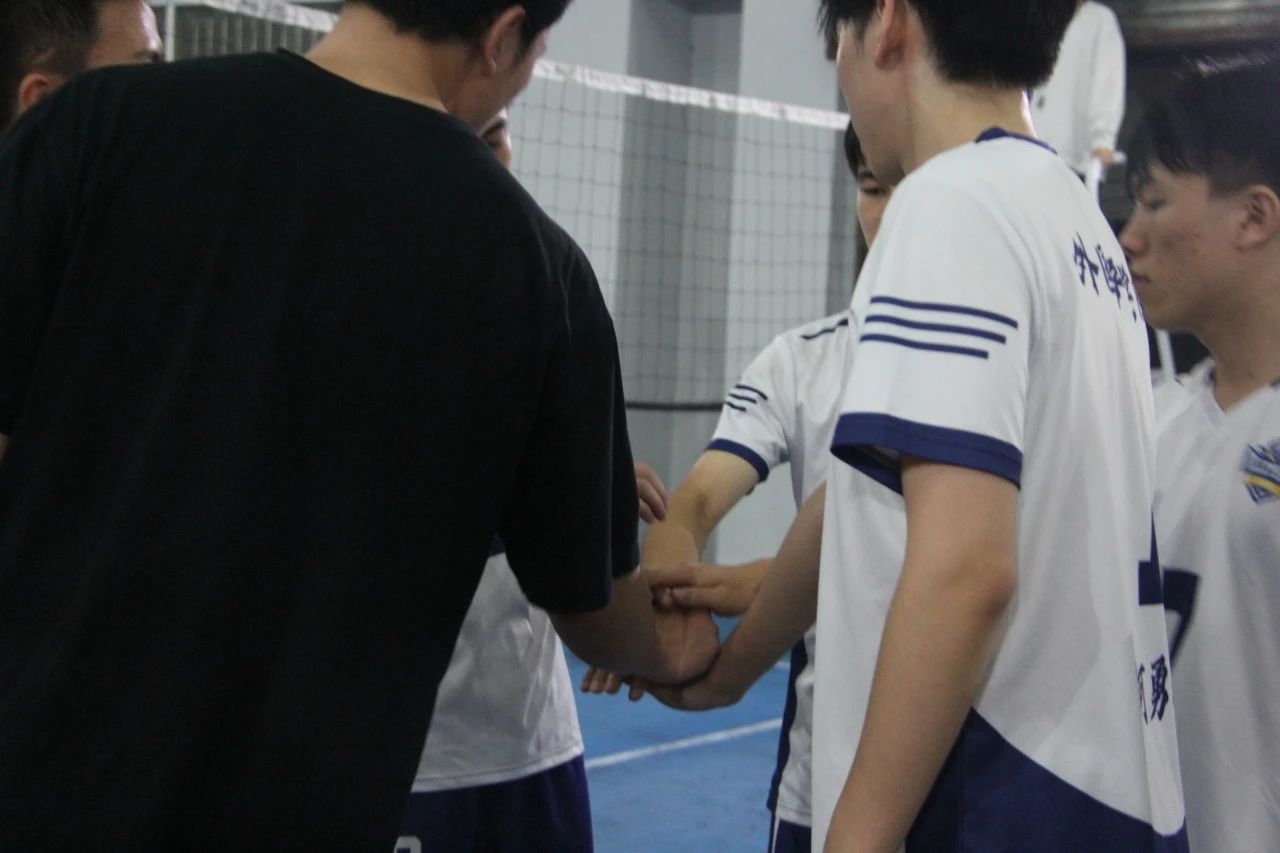 A:希望排球爱好者不要惧怕日常训练的枯燥,要相信每一个平凡的训练日都会成为美好回忆,场上挥洒的汗水也将以另一种形式回报给你们。外国语学院排球队的未来属于你们,加油!