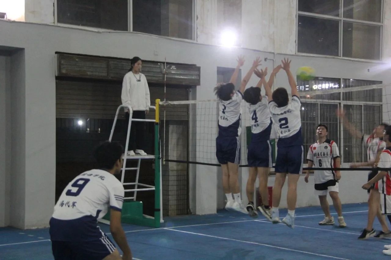 加油,你们都是最棒的!随着哨声一响,我方4号罗词鑫迅速反应,先发制人。只见他高高跃起,如猎豹般将球扣杀,让对手无从防守,成功为我院拿下一分。