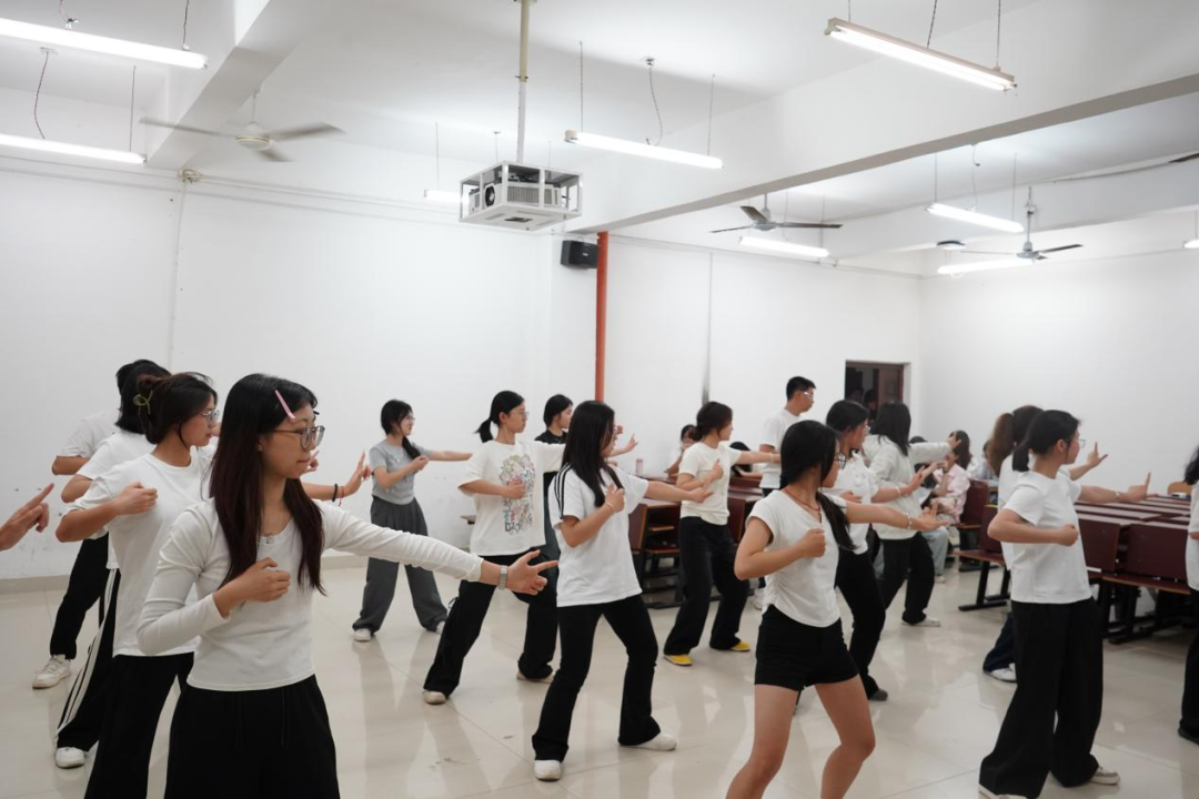 为传承中华传统体育精髓,深化体育与文化育人功能,深入贯彻体育教育理念的实践,同时检阅同学们八段锦的学习成果,让大家在锻炼中强健体魄、滋养心灵,5月12日-13日晚上19:30,外国语学院于外语楼北206教室举行八段锦比赛复赛。本次复赛的参赛班级均为学院初赛中脱颖而出的佼佼者,他们以饱满的热情和昂扬的斗志,规范的动作展示与团队风貌呈现,充分展现了八段锦的独特魅力。