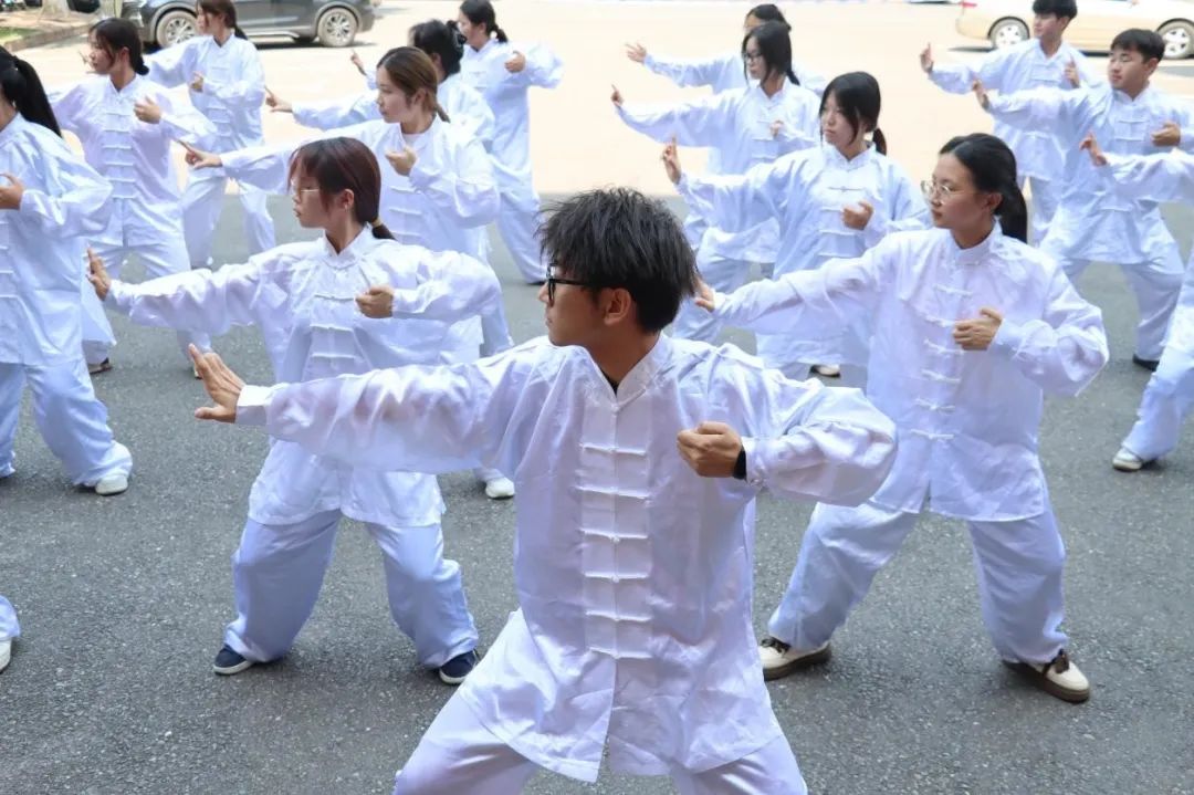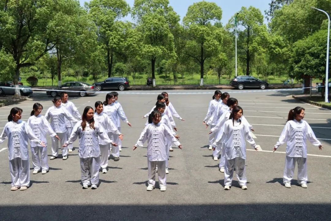 锦韵流芳,健心启智。在5.25幸福节的浓厚氛围中,为弘扬中华传统体育与健身养生文化,检阅同学们八段锦的学习成果,同时助力同学们在传统健身中收获身心愉悦,5月26日下午13:30,外国语学院于外语楼前坪举行了八段锦比赛决赛。外国语学院党总支书记贺琴琴、副书记欧阳竹,学工办主任邱国周,辅导员老师刘方红、邓昭樟出席活动,初赛胜出的2403班、2404班、2406班、2409班、2410班、2411班参加本次比赛。