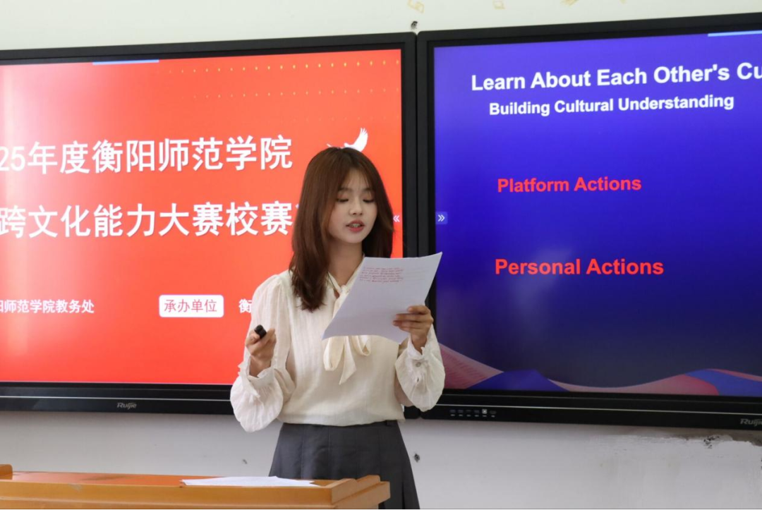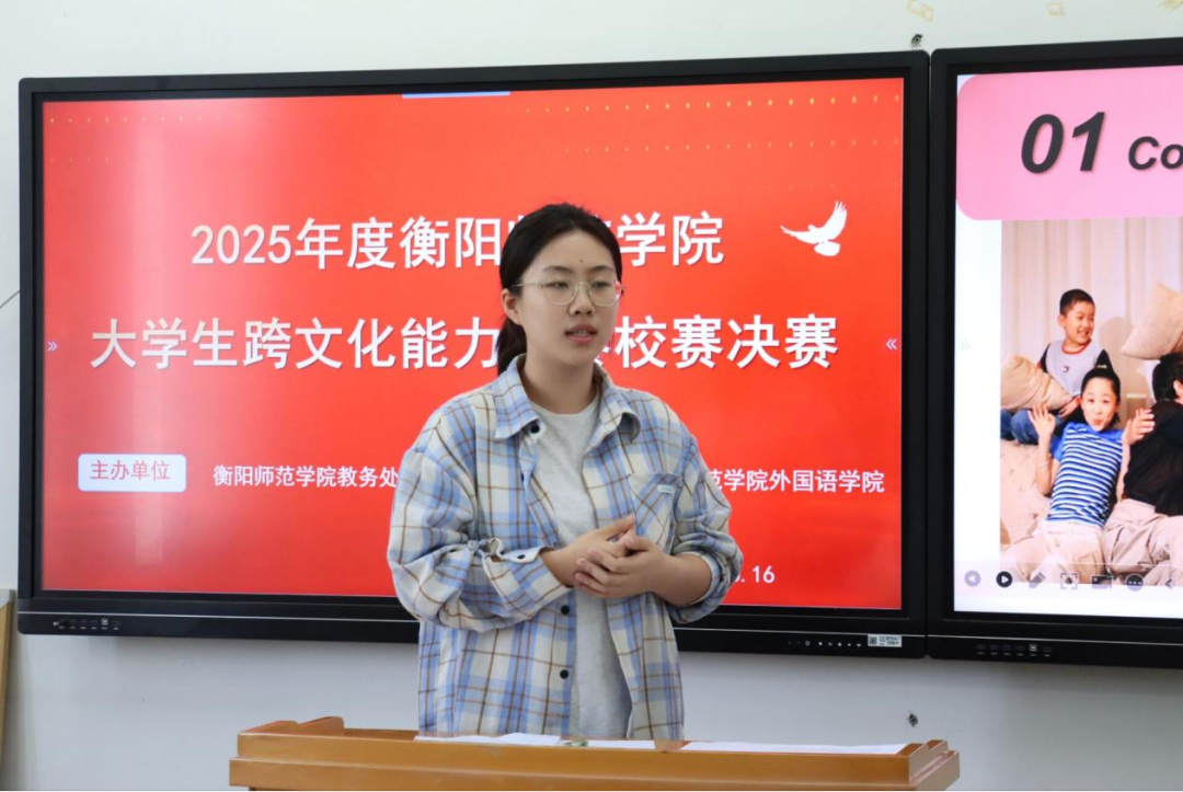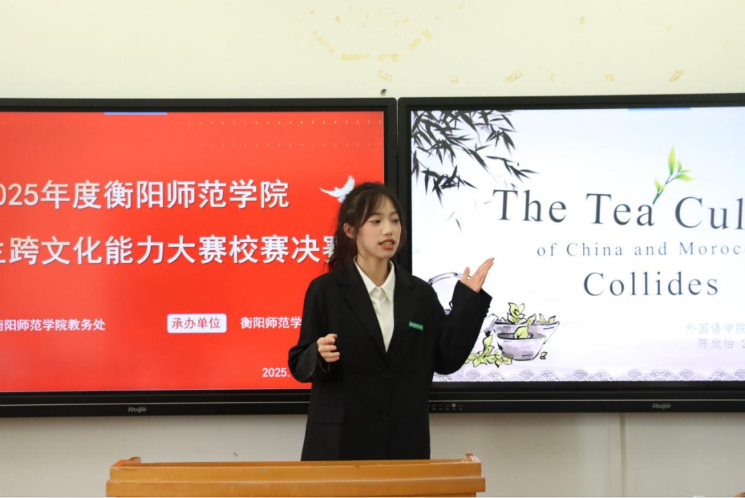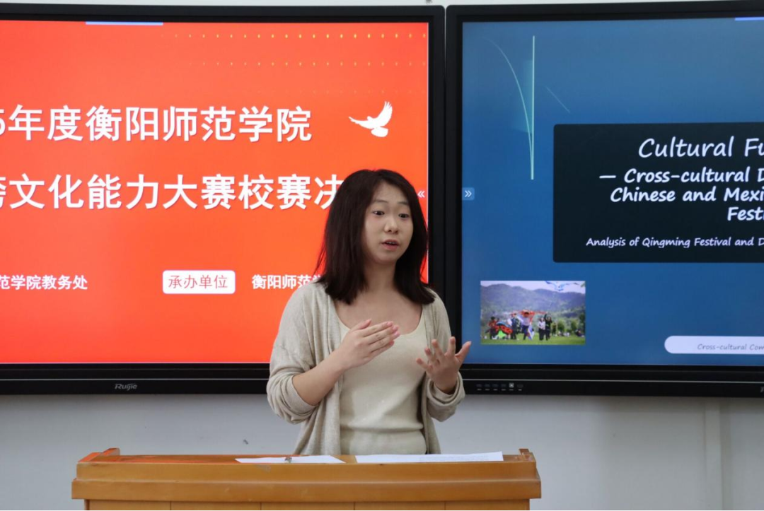文化是一座桥梁,连接着各国的情感与智慧。为深入贯彻落实立德树人的根本任务,进一步培养具有跨文化能力的高素质国际化人才,引领青年人坚定文化自信,6月16日下午13:30,衡阳师范学院2025年高校大学生跨文化能力大赛决赛在外语楼南301教室举行。本次比赛由衡阳师范学院教务处主办,乐鱼在线登录入口承办,EH英语协会协办,分专业组和非专业组依次进行,外国语学院教师吕华艳、陈兰、彭群林、李九英担任大赛评委。