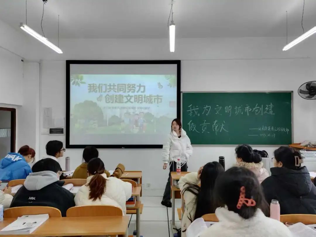 2021级商务英语三班,是一个文商并举、温暖有爱的集体。他们用文明书写生活,用知识充实自我,用爱心回馈社会,用团结铸就辉煌。课堂内外的知行合一里,藏着文商融合的成长密码;集体活动的携手并进中,映着温暖有爱的精神底色。