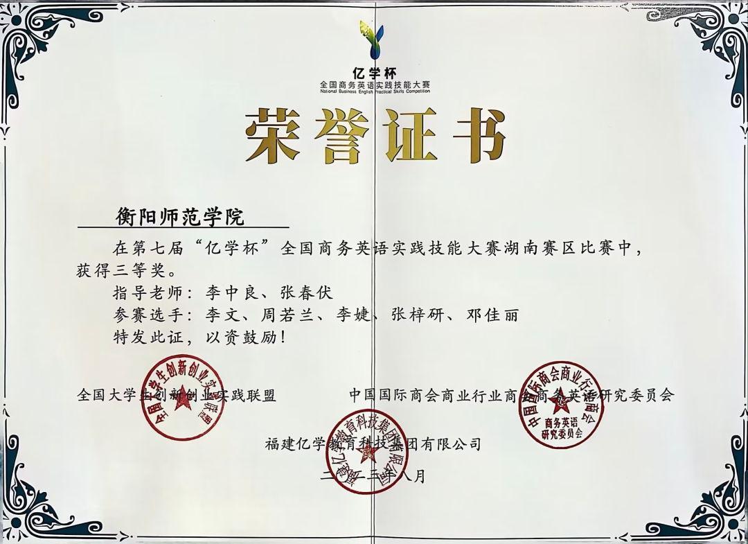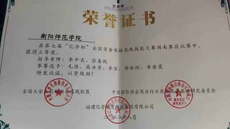 在专业赛事的舞台上,2021级商务英语三班的同学们更是光芒四射。无论是在“亿学杯”中展现语言与专业技能的魅力,还是在商务实践大赛里彰显创新与实践的能力,他们一路过关斩将,将一个个荣誉收入囊中。而在学校和学院组织的各类比赛中,同样少不了他们活跃的身影。在“用英文说好中国故事”等活动中,他们化身文化使者,以生动的语言向世界传递中国声音。每一次参赛,都是对自我的挑战;每一份成绩,都是汗水与智慧的结晶。