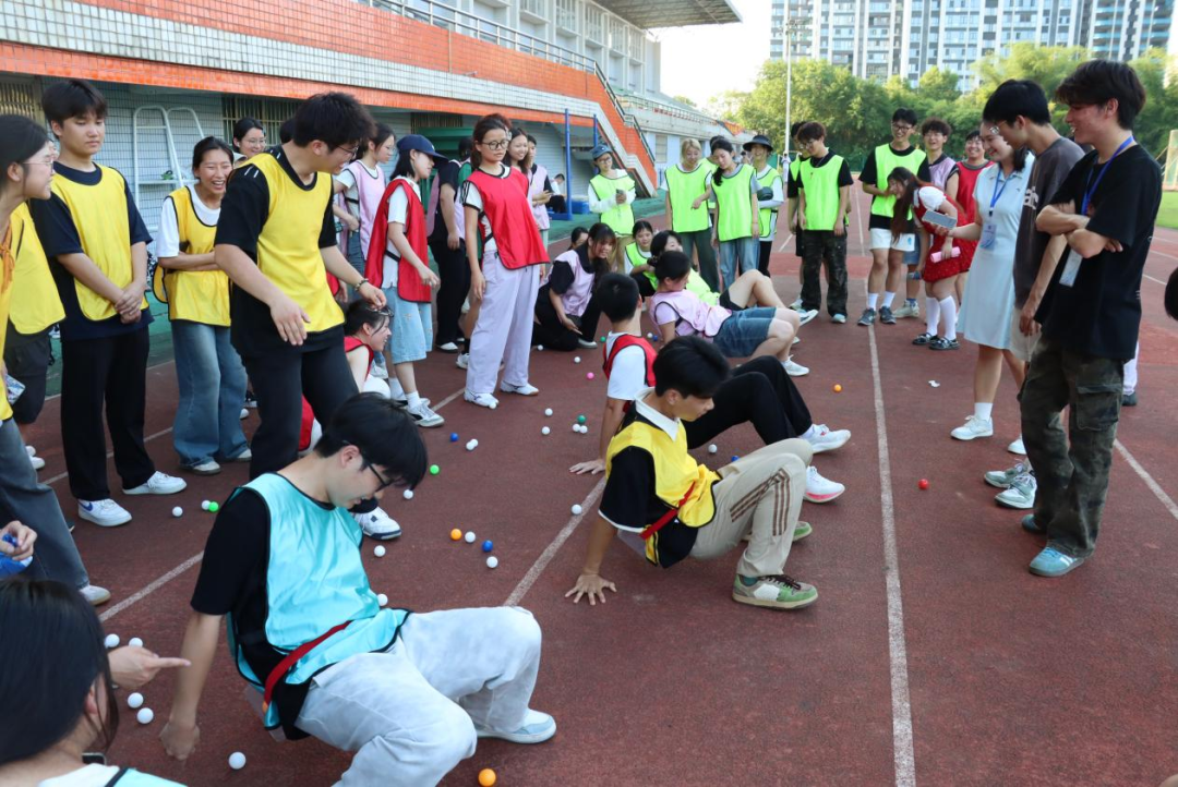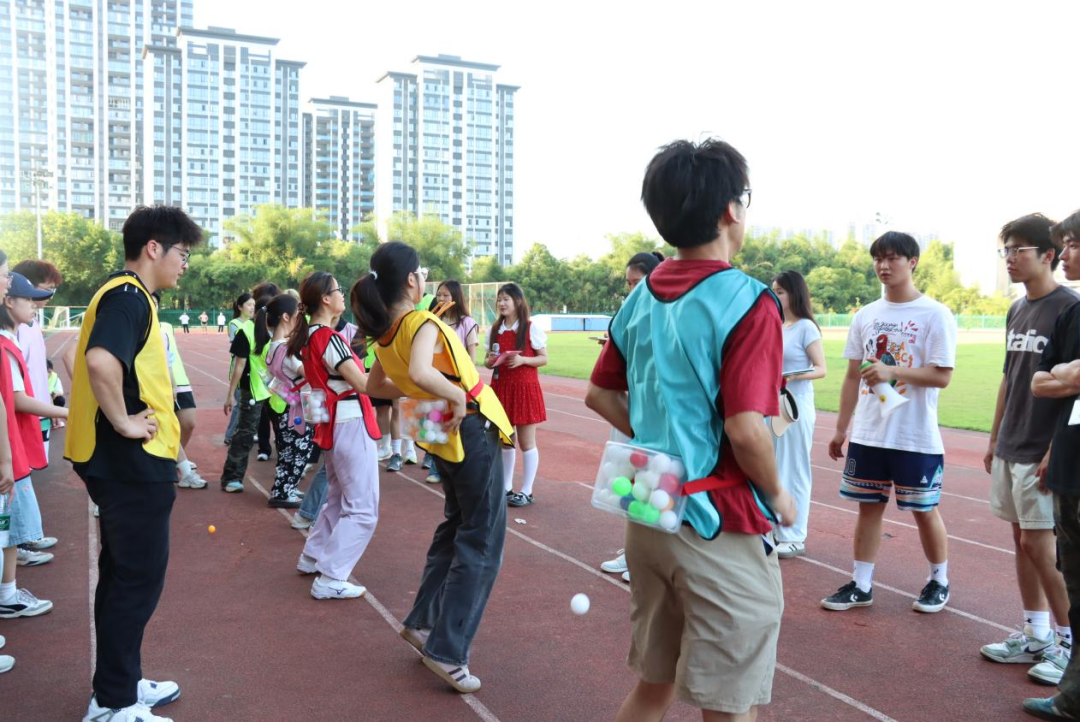随后的趣味运动项目活动中,更多同学踊跃参与其中。“背夹球接力”需要同学们展现出极高的默契程度,选择与自己默契程度最高的搭档也是赢得该项比赛的关键。比赛开始,各组队员迅速进入状态,他们背靠背夹住球,小心翼翼地向前移动。随着比赛的进行,有的队伍因为配合不当而使球掉落,而那些配合默契的队伍则显得游刃有余,他们步伐一致,速度飞快,迅速将球传到下一个队员手中。本场比赛在考验同学们的默契程度的同时,也展现了他们的团队精神和竞技风采。