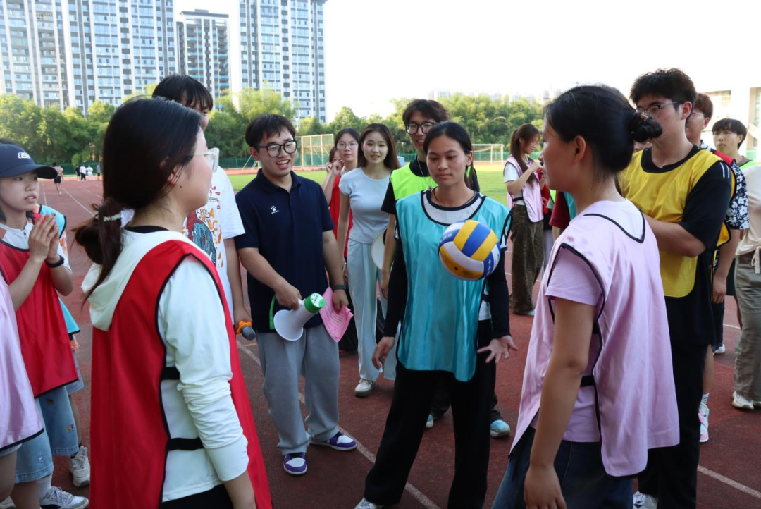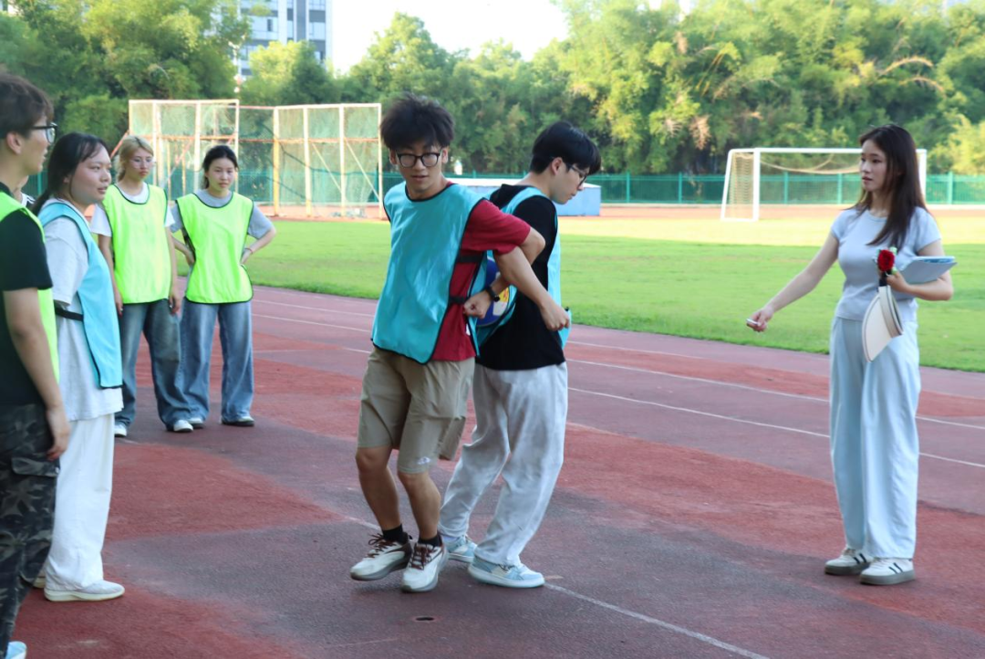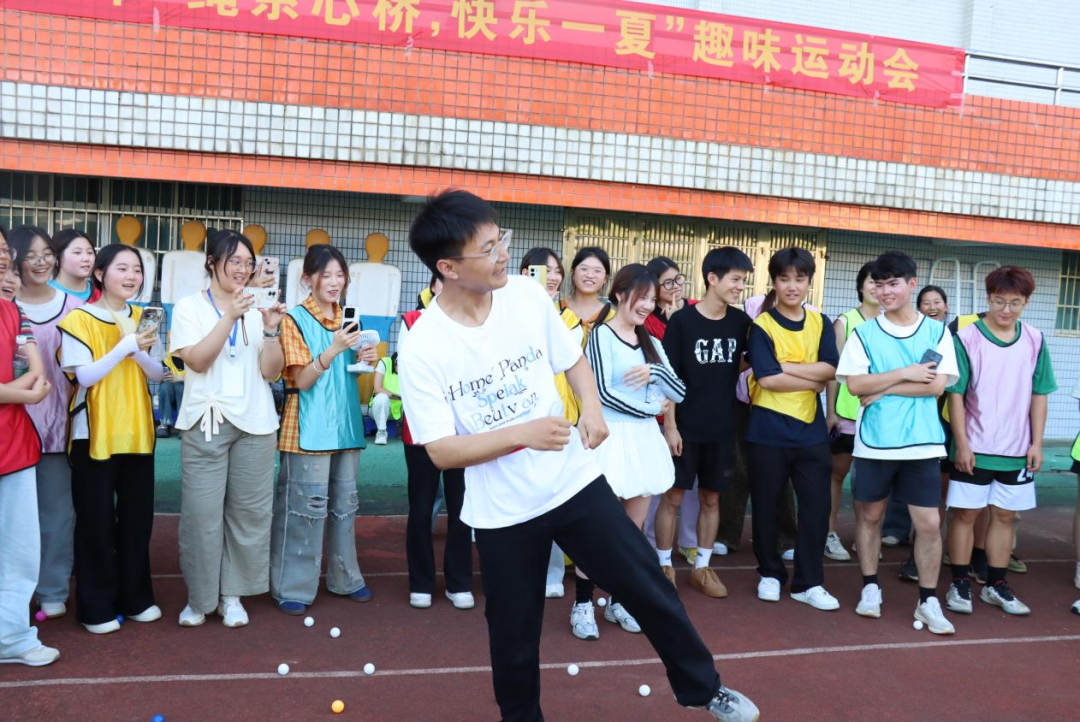 在学期末的繁忙时刻,为积极响应加强大学生心理健康教育的号召,为同学们提供一个释放压力、增进友谊的平台,6月6日下午16:30,由衡阳师范学院学生工作部主办,外国语学院承办的“绳牵心桥,快乐一夏”主题趣味运动会在风雨田径场拉开帷幕。学生工作部心理健康教育中心专职教师刘邵磊、外国语学院党总支副书记欧阳竹、辅导员老师邓昭樟出席活动,与2023、2024级的同学们一同沉浸在这夏日与运动交织的活力与激情之中。