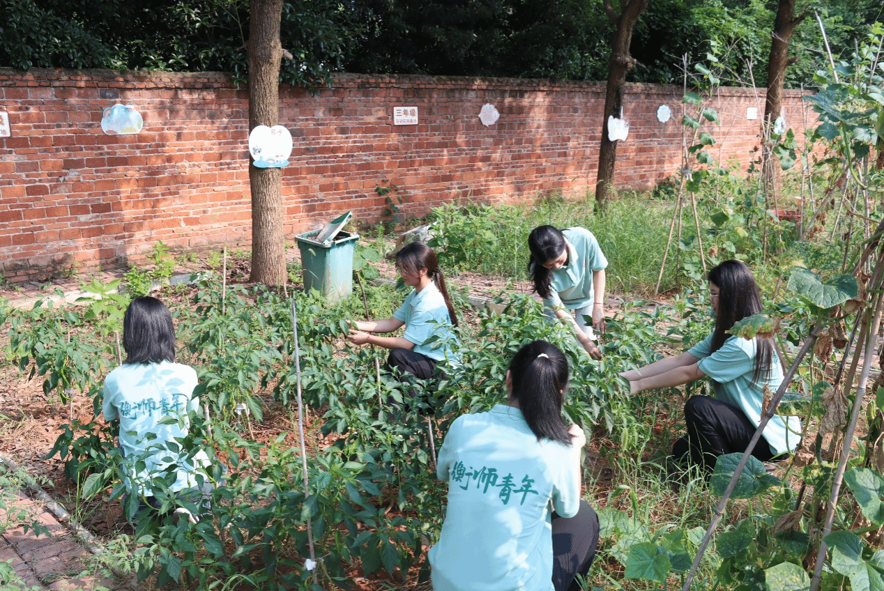 田野劳动初体验,解锁农事新技能。全体参与学生在明德小学校园劳动实践角集合。在指导老师和志愿者的组织下,学生们分为除草、浇灌、采摘三个实践小组,有序进入指定劳动区域。