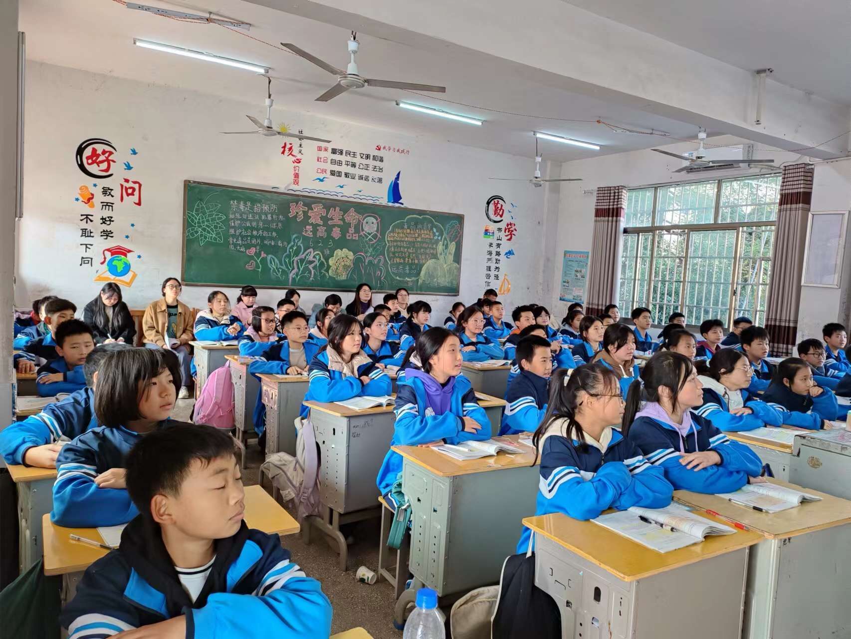在涟源蓝田中学,谢院长一行同实习生李美思、实习指导教师郭校长、谢老师进行了深入交谈,并听取了李美思同学的汇报课。