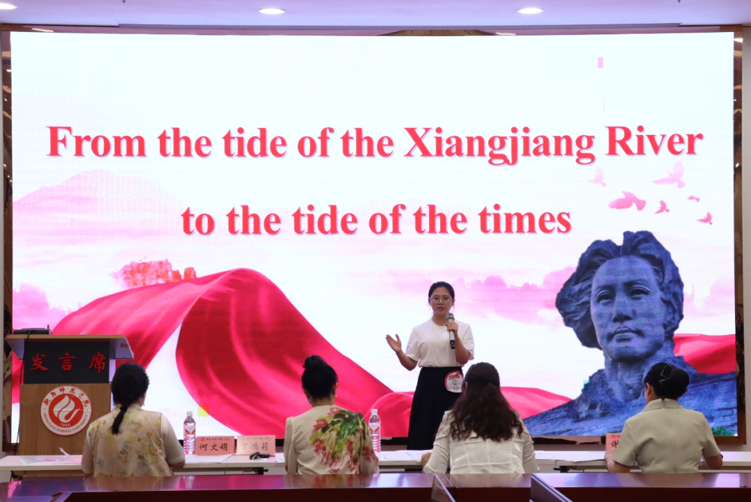 为深入贯彻落实二十大“讲好中国故事、传播好中国声音,展现可信、可爱、可敬的中国形象,推动中华文化更好走向世界”要求,同时大力传承和弘扬中华优秀传统文化,全面提升青年学子的英语综合素养与国际传播能力,5月7日下午,第五届“用英语讲中国故事”衡阳师范学院专场决赛在东校区图书馆213报告厅圆满落幕。大赛湖南省组委会副主任邓佳凝,校团委书记朱贤友,外国语学院党总支书记贺琴琴,党总支副书记欧阳竹莅临现场出席活动。活动特别邀请到外国语学院党总支书记贺琴琴、国际交流处处长贺鸿莉以及外国语学院副院长谢彩虹、何文娟四位专家担任评委,共同见证选手们的精彩表现。决赛以“时代浪潮下的我与中国”为主题,激励青年学子们树立远大理想信念,勇立时代潮头,勇担文化传播使命。