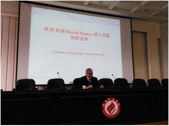 Martin Ramey博士从女性主义视角出发,结合《圣经》的各种意象,阐释了美国著名作家丹.布朗的神秘侦探小说《达芬奇密码》,认为该小说实际上反映了当代美国社会性别角色的转换,具有重要的现实意义。Martin Ramey语言幽默而生动,用浅显的语言表述了深刻的文学批评理论,赢得了学生们的阵阵掌声。讲座结束前Martin Ramey博士还与部分学生进行了互动交流,耐心地解答了学生的提问。最后,Martin Ramey博士表达了对衡阳师范学院的感谢及美好祝愿,讲座在热烈的气氛中圆满结束。