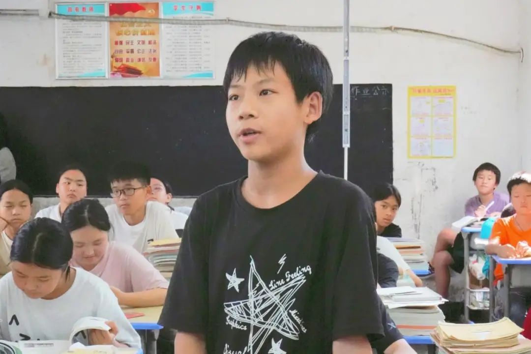“我要像屈原一样坚守初心,好好学习!”“以后遇到不公,我要勇敢站出来!”讨论环节中,同学们纷纷举手发言,质朴的话语中透着坚定。一句句真挚的感悟,字里行间不仅彰显着对爱国精神与民族气节的深刻认知,更传递出身体力行的坚定决心。